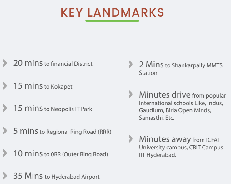 Located near Mokila & Shankarpalli (emerging villa zone)