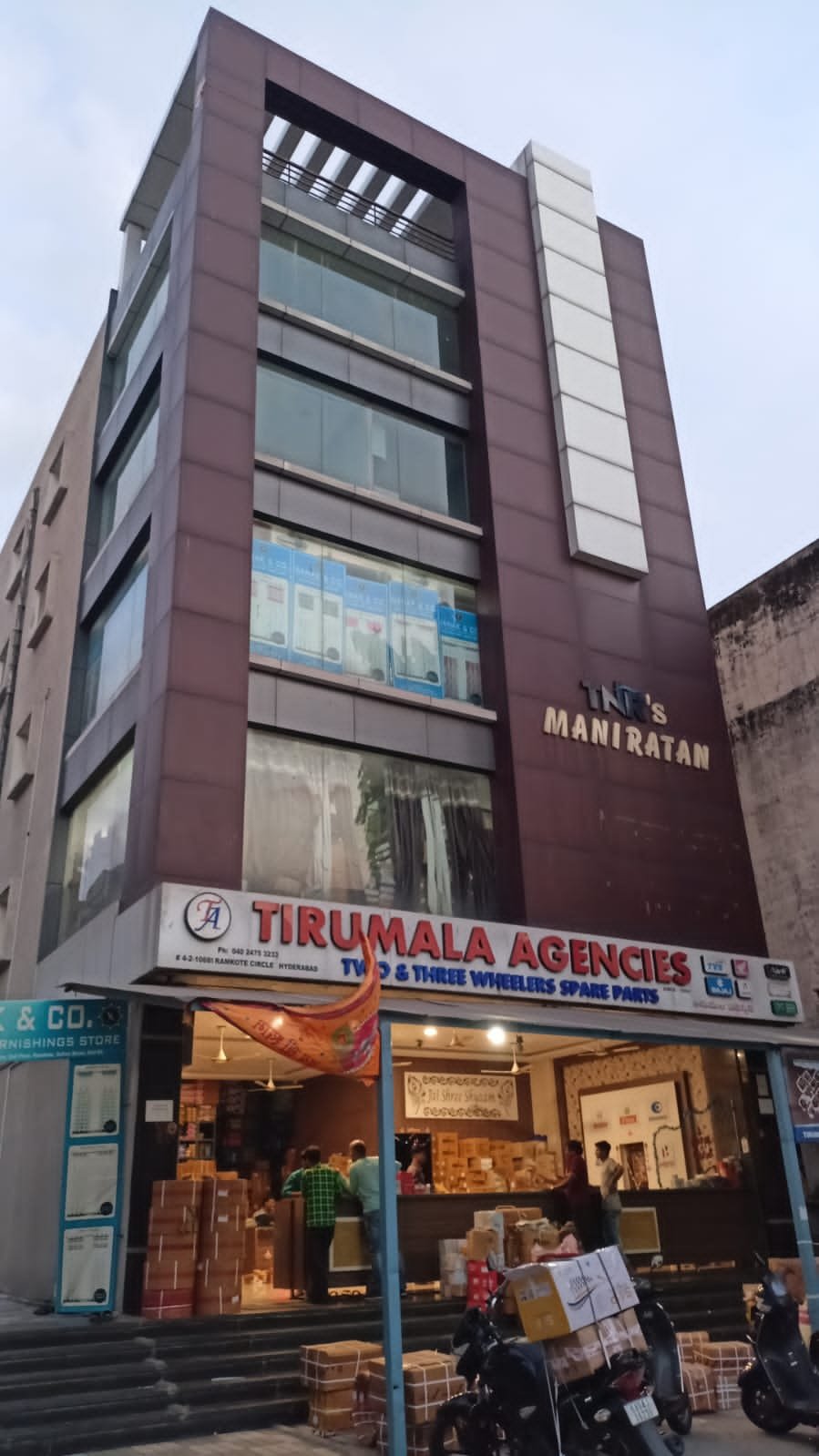 TNR Mani Ratan Towers is a commercial building located in the Ramkote area of Hyderabad, Telangana. The building houses various businesses, including Culture Cart, Krishna Pharmaceutical Distributors, and Traverse Holidays.The building offers ample space of parking making it convenient for visitors or customers enabling any commercial activity..It also offers passenger lifts and 24/7 water facilities..