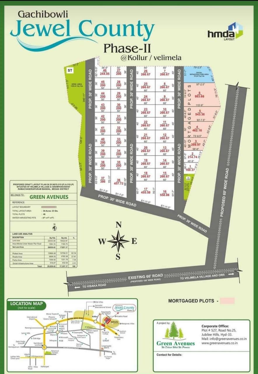 Welcome to Jewel County Layout, the pinnacle of your dream home desires in Hyderabad’s alluring neighbourhood of Kollur. At Jewel County, we’re committed to providing carefully planned residential plots that capture the spirit of contemporary life in the tranquilly of the outdoors. Our goal is to build a community that combines metropolitan convenience with unspoiled beauty so that your dreams can germinate and grow. We are dedicated to creating a living experience that sparkles and shines, ensuring your happiness and fulfilment at every turn, with an emphasis on quality, innovation, and customer satisfaction.